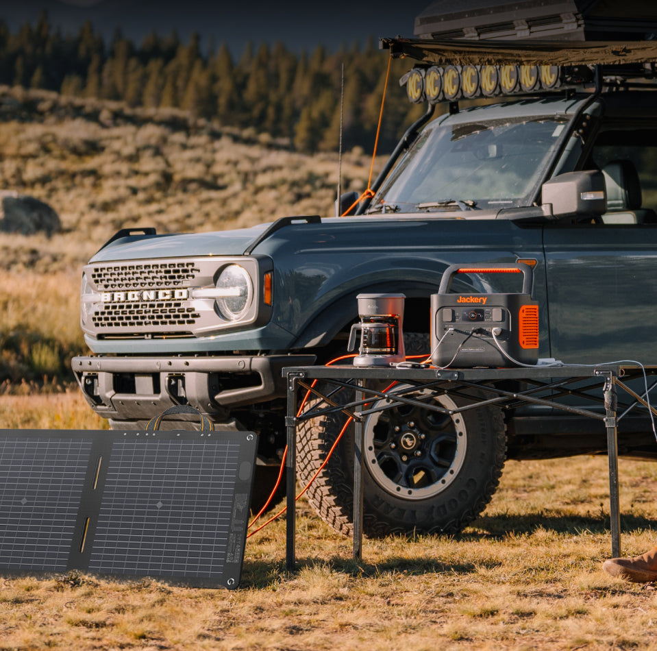 The SolarSaga 100 panel is very convenient; easy to set up. It works great in bright sunlight and clear skies. However, I was not able to get any charge to the 880 Pro on a lightly overcast sky, 50°F day, which is a bit disappointing, but it was giving me a little charge directly to my cell phone via the built-in USB C port.