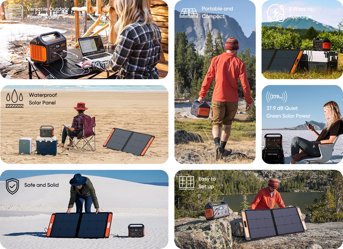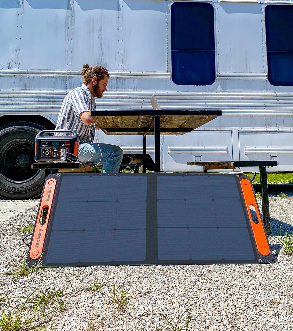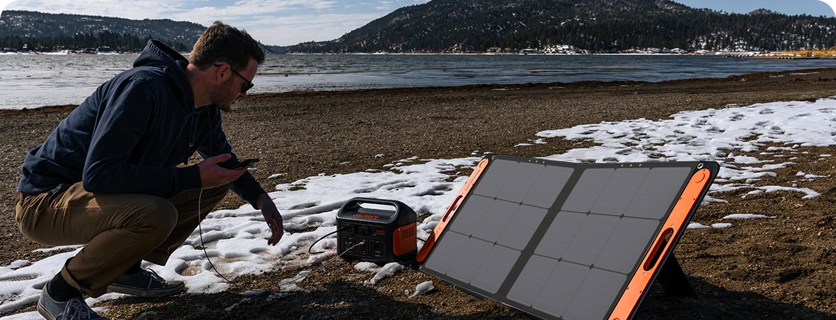 Jackery Solar Generator 500 is a solar solution that combines Explorer 500 portable power station with SolarSaga 100W solar panel. It converts sun energy by solar panels into electrical power and then stores it in the portable power station for later use. This solar generator is a reliable and clean power source for campers, RVs, or as an emergency backup.