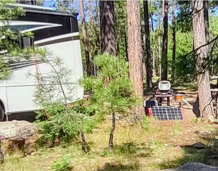 We pay $17 a night for a campsite with no hookups because we are on a senior lifetime pass, and it gives us a big discount. In some areas, you can't get a campsite for less than $100 a night or so. Jackery gives us the ability to camp for basically nothing — something that we want. It gives us more money to spend on food or time to go to lakes with dogs.