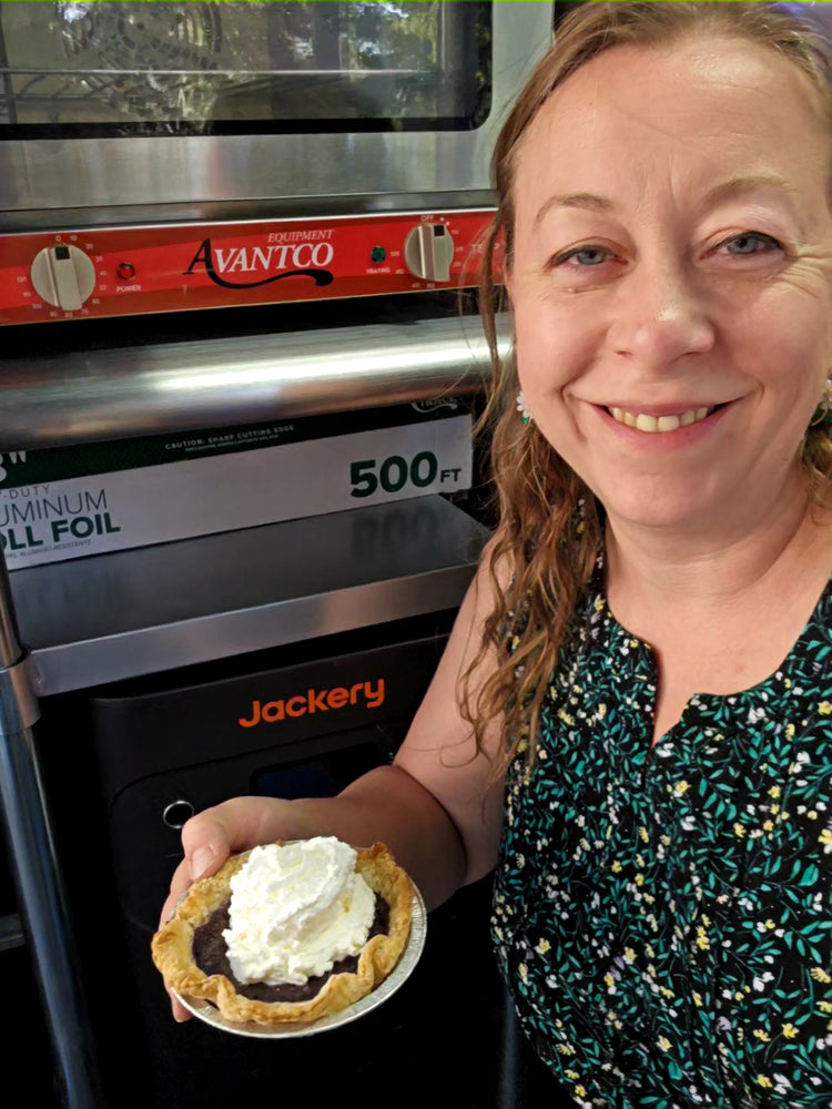 Memorable events highlight the joy of having the Jackery with her. At the Garlic Festival, she themed pies with garlic twists, the Jackery ensuring uninterrupted power amid crowds. A recent town fair with fireworks capped a successful day, her setup humming efficiently. But it's the everyday reliability that resonates: no fumes near food, no noise complaints, just steady energy. "It's my source of power. It's there for me," she describes it as a "team member." In three words: "quiet, conservative, and easy to use."