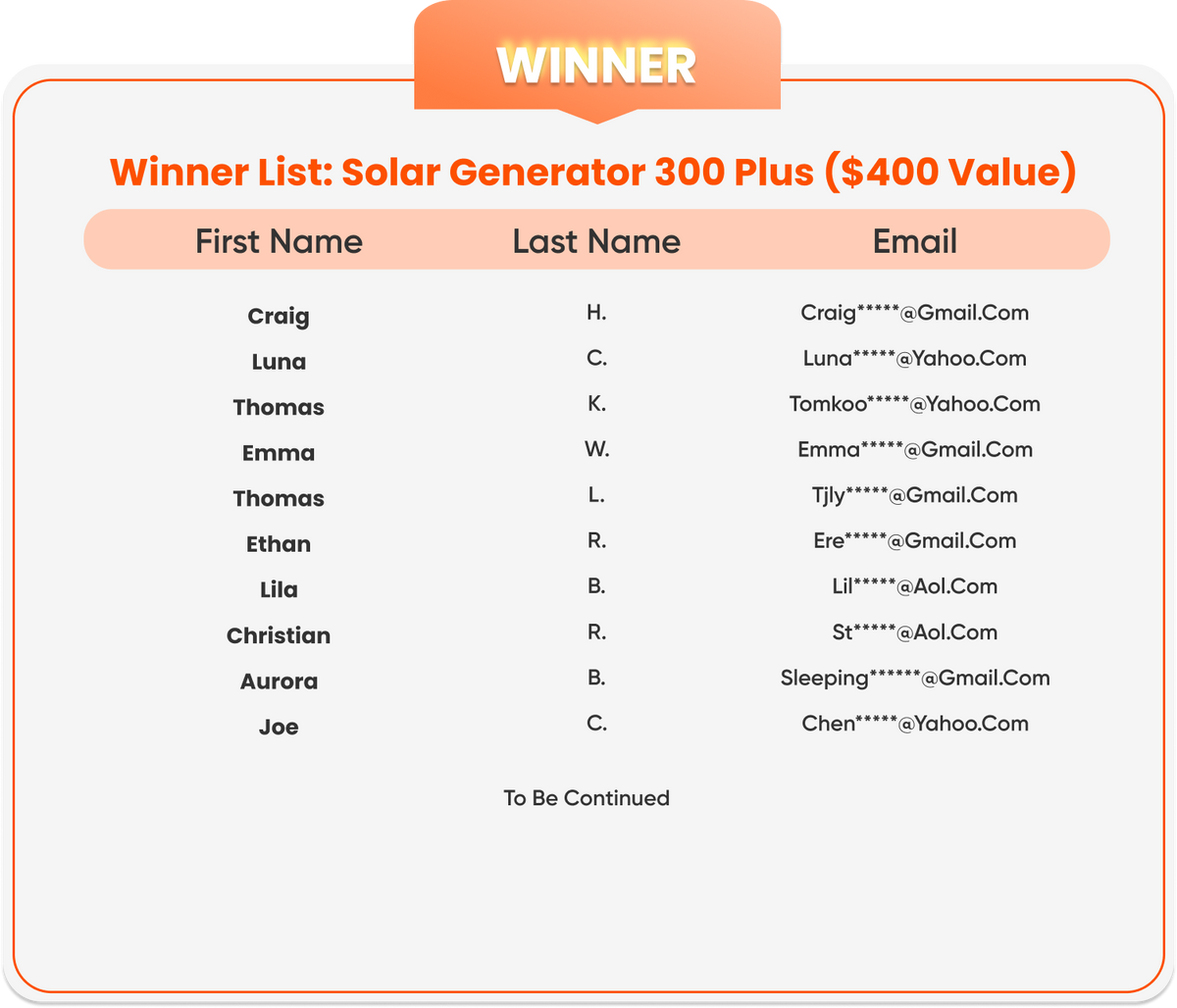 7× Solar Innovation ($10,000+ value), 15× Solar Generator 300 Plus ($400 value)