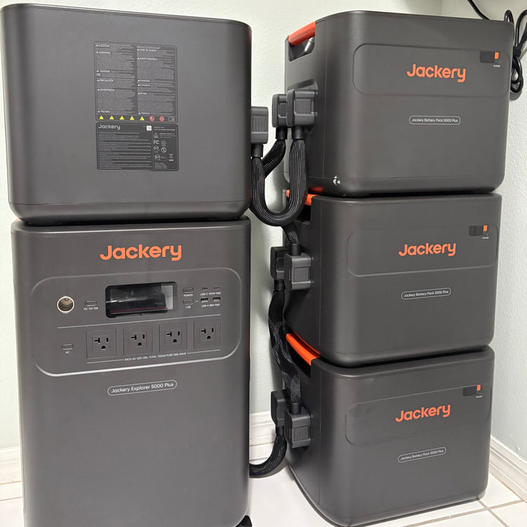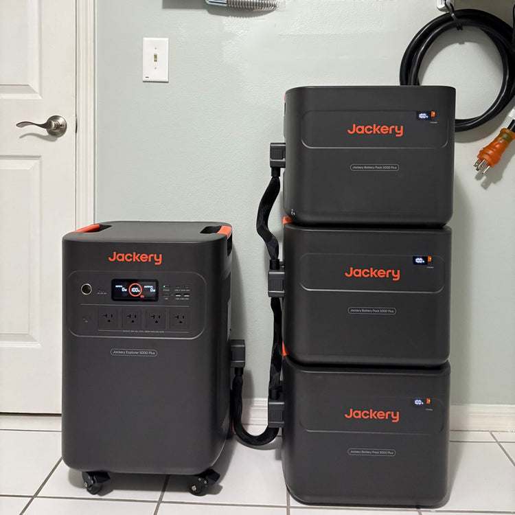 He began with an Explorer 1000, then more, until it became a system. Today, his home runs on a Jackery Explorer 5000 Plus with three external batteries, a Explorer 3000 Pro for heavy loads, and several Explorer 1000s and a Explorer 300 for smaller needs. “If the main ever failed, the others could keep everything running,” he says.