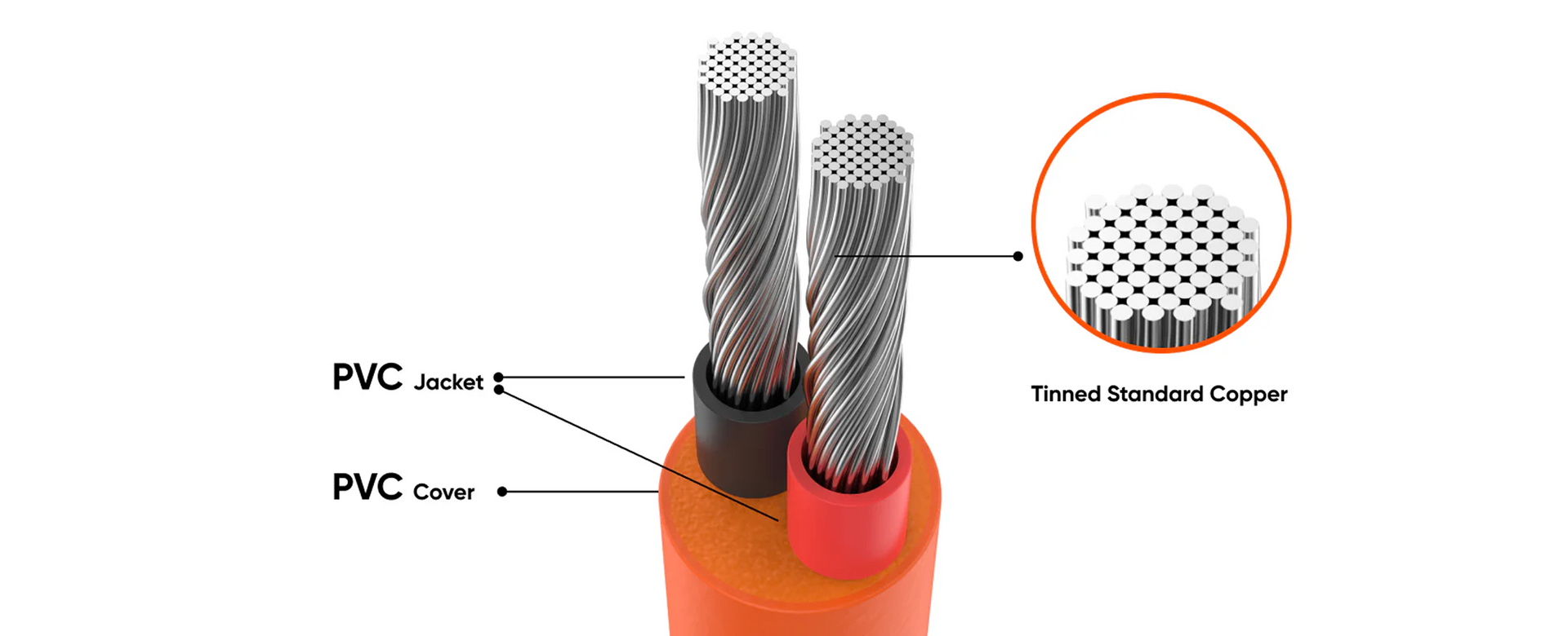 The tin-plated copper wire transfers fast, stable electricity safely and efficiently. The PVC material makes the cable durable and flame-retardant ideal for outdoor adventures.