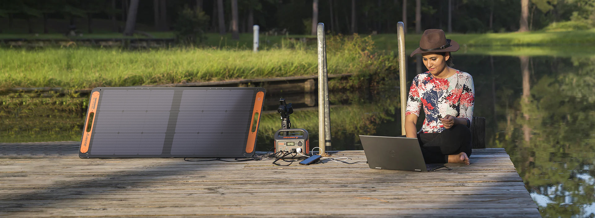 The Explorer 300 can be recharged under straight full sun in 3.5 hours from 0-80% by connecting a SolarSaga 100W solar panel.