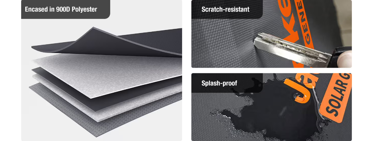 Encased in 900D Polyester | Scratch-resistant | Splash-proof | Soft and foldable
