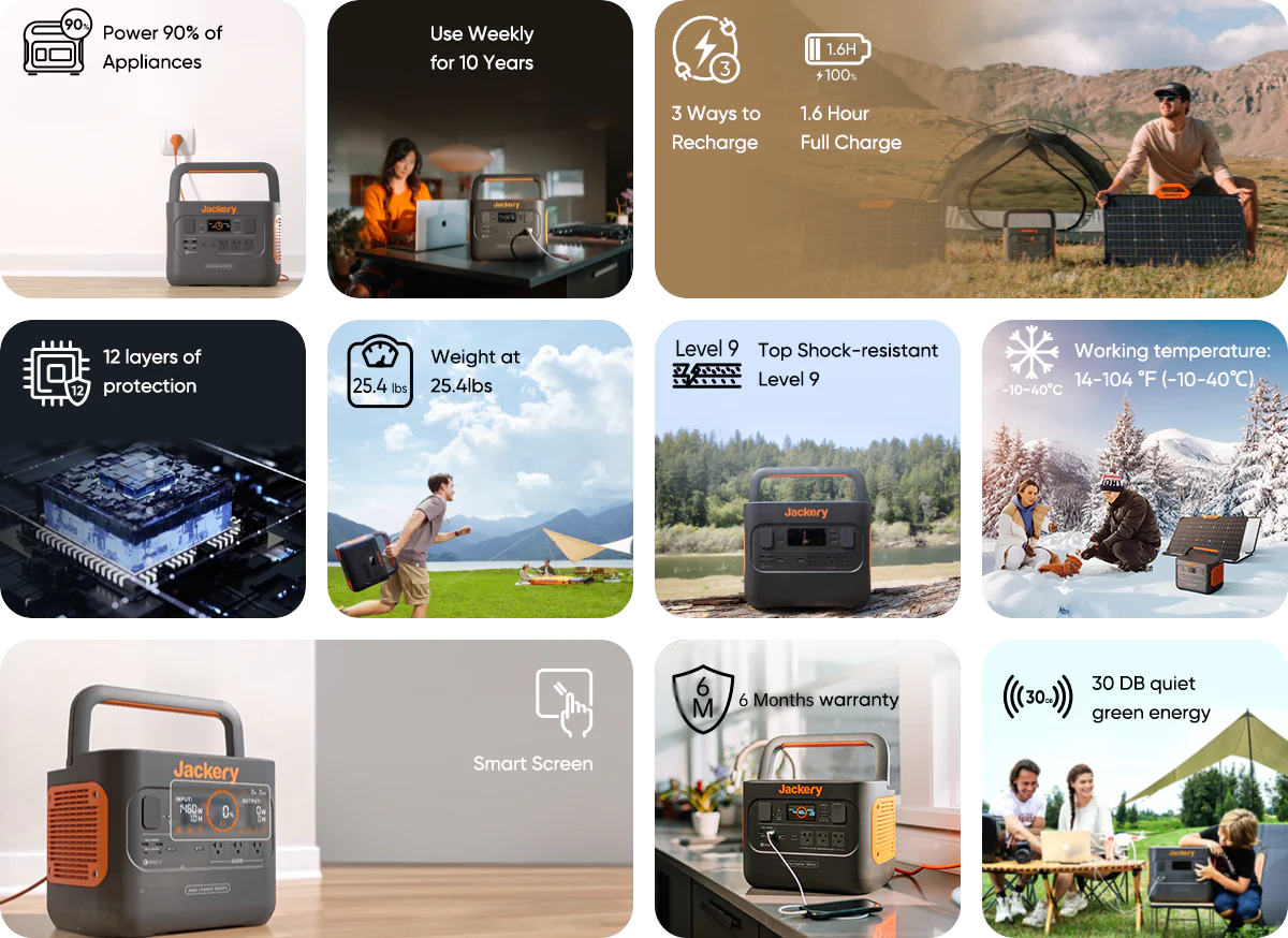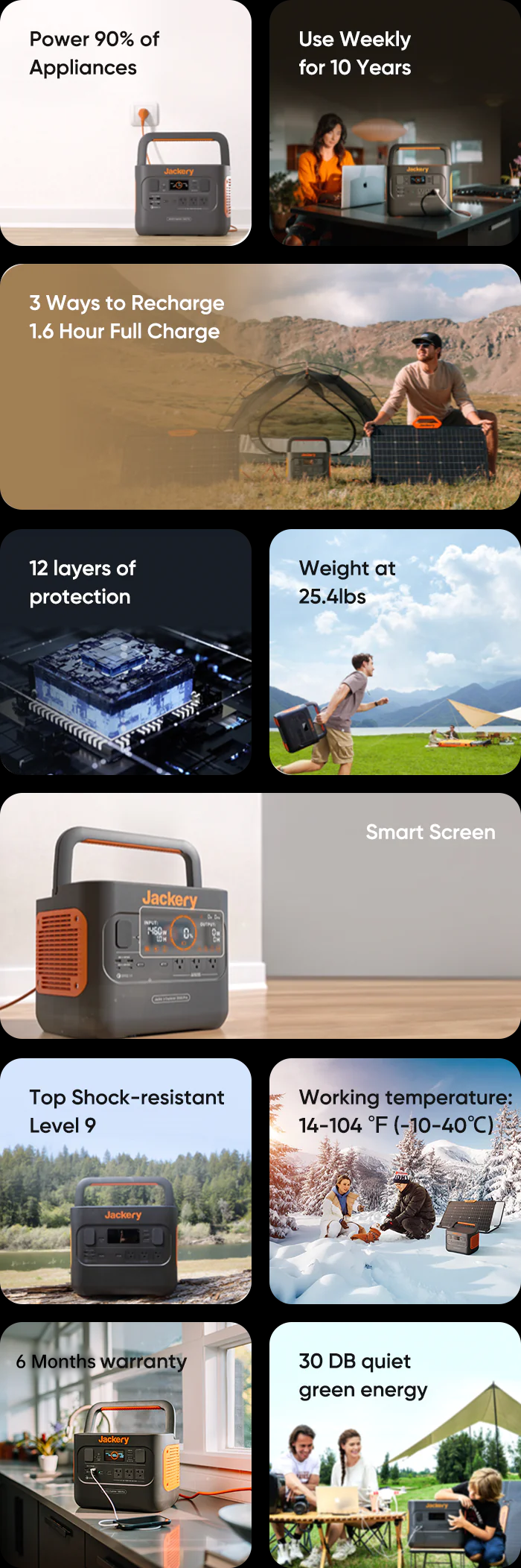 Jackery Explorer 1000 Pro can support 90% of your daily used appliances, from mobile phones to refrigerators, and even pumps; this solar charging power station can easily cover them all. The Explorer 1000 Pro delivers immense solar power - from RV trips to home emergency back up.