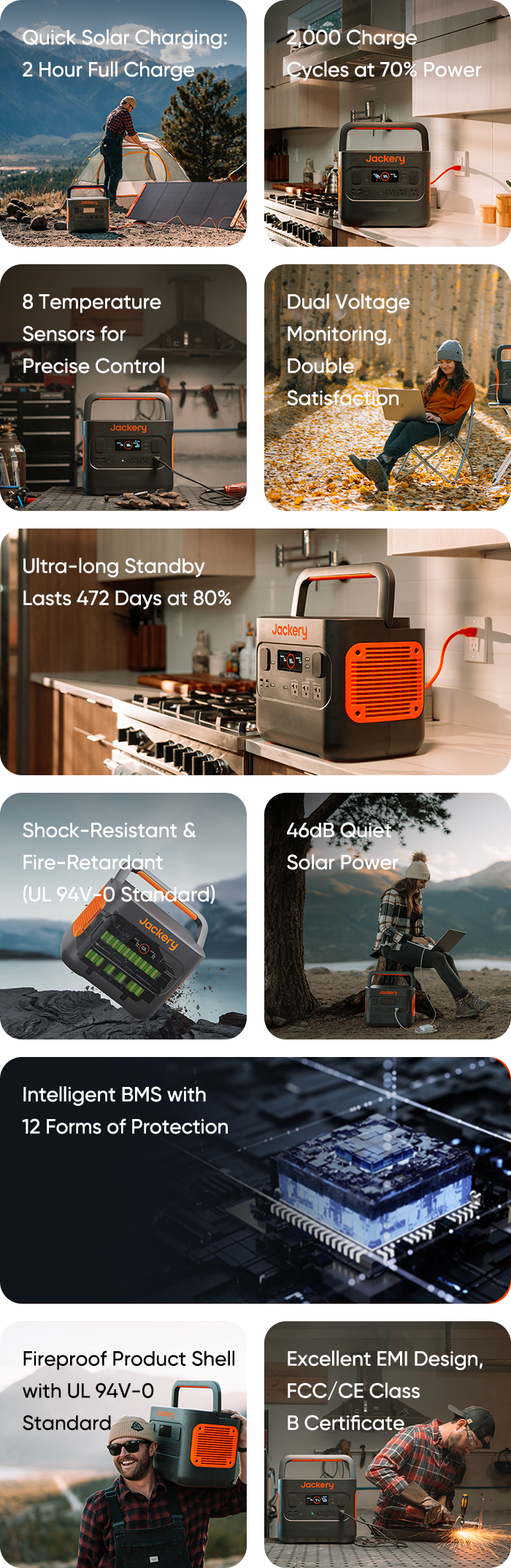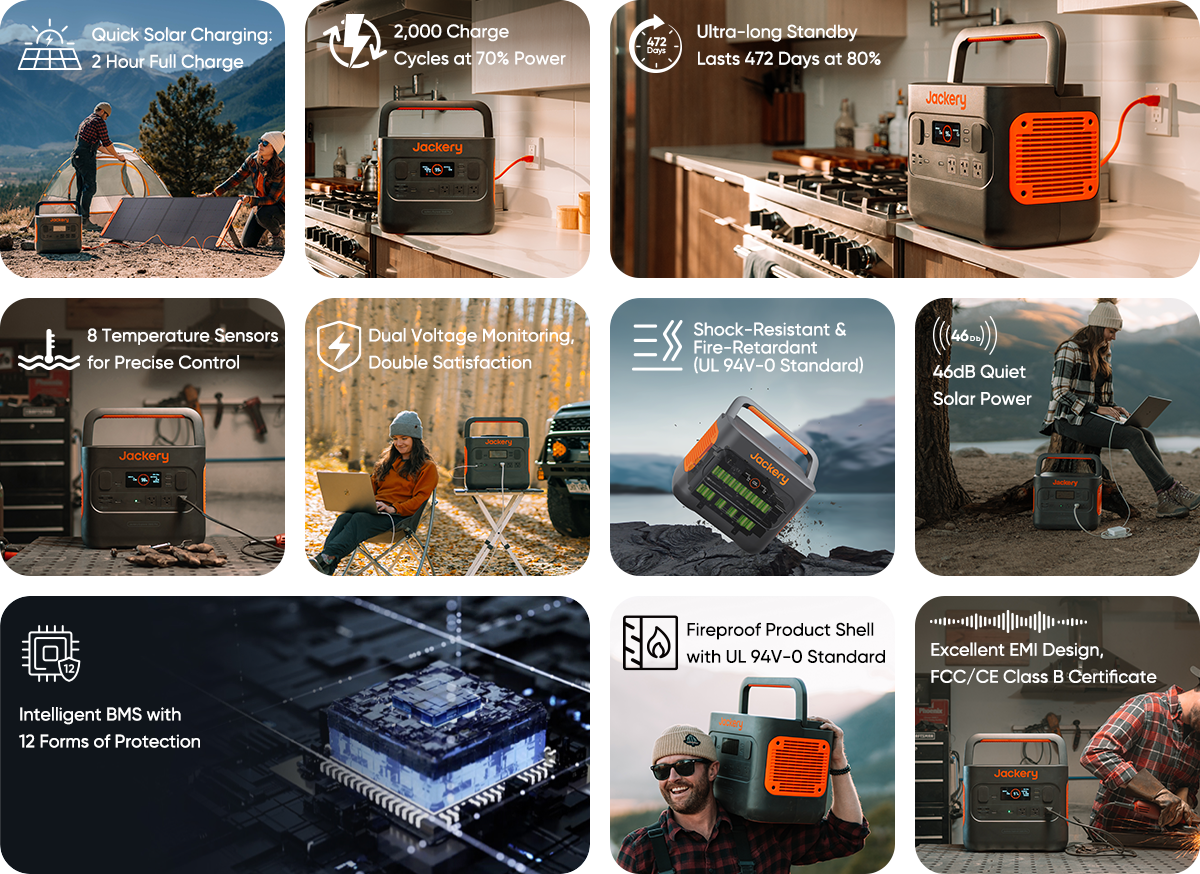 Jackery Explorer 1500 Pro Portable Power Station can charge 95% of essential devices in your life. With a battery capacity of 1512Wh, the portable design at only 37.4 lbs is perfect for outdoor usage. Explorer 1500 Pro provides industry-leading performance with its intelligent BMS with 12 forms of protection, excellent EMI design, and an unrivalled cooling system. Explore anywhere you desire!