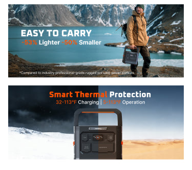 Never let the weather stop you. The Explorer 1500 Ultra delivers stable power in temperatures as low as 5°F and as high as 113°F, ensuring consistent performance for winter camping or desert expeditions.