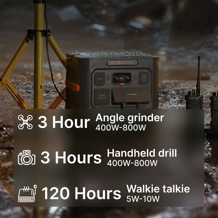 The Explorer 1500 Ultra is IP65-rated dustproof and waterproof, level 9 seismic shockproof, and one-meter drop-resistant, ensuring durability and reliability in the harshest conditions.Its industry-leading Titanium-Alloy cooling structure and a patented bottom-drainage design. Whether it's a dusty construction site or a heavy downpour, the IP65-rated enclosure ensures your power stays protected and operational.