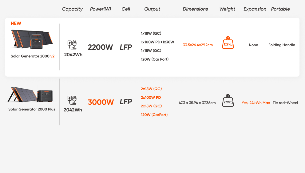 Designed for convenience, the Jackery 2000 v2 features a foldable handle and weighs just 18kg. This compact, lightweight powerhouse is perfect for home backup without taking up space, making it ideal even for apartments.