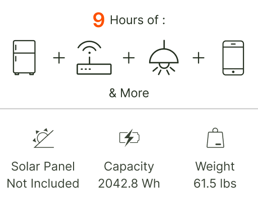 2042Wh of LiFePO₄ (LFP) capacity keeps essentials like your fridge, Wi-Fi, and lights powered through a full-day outage