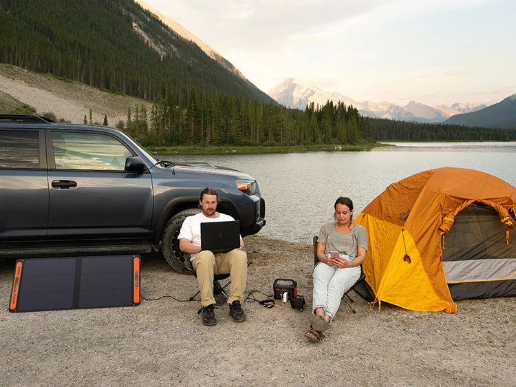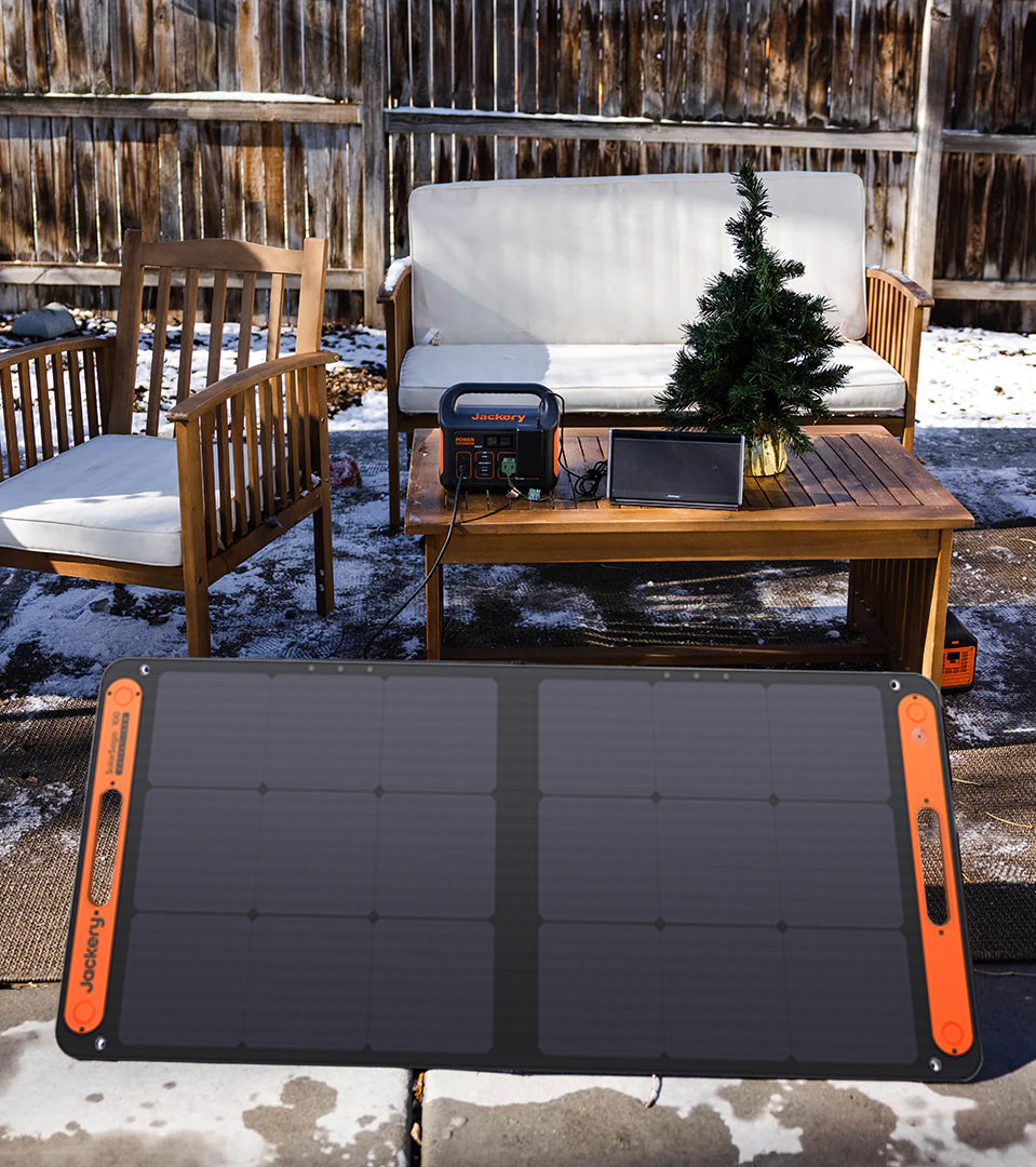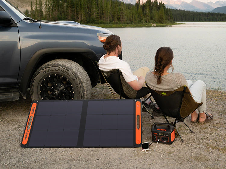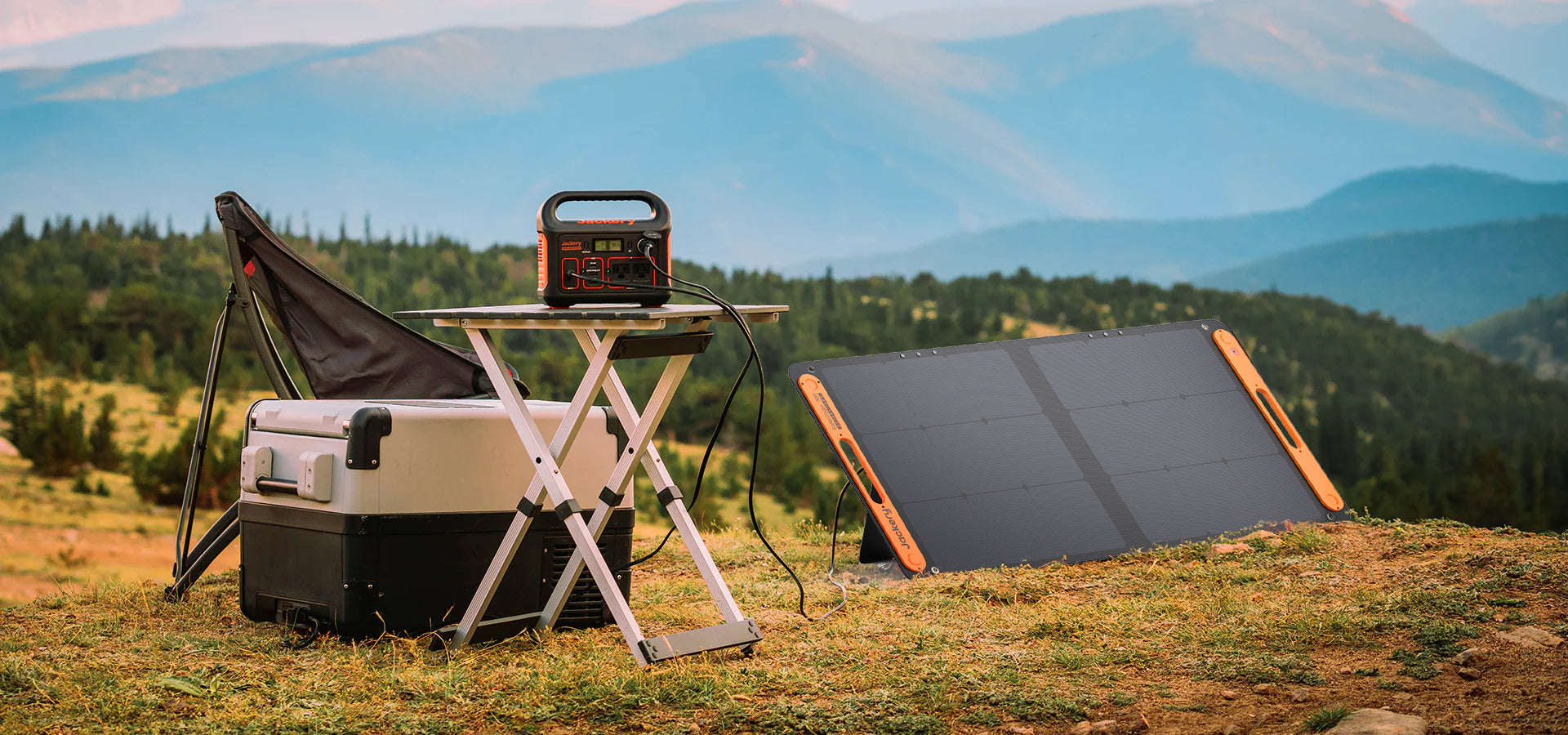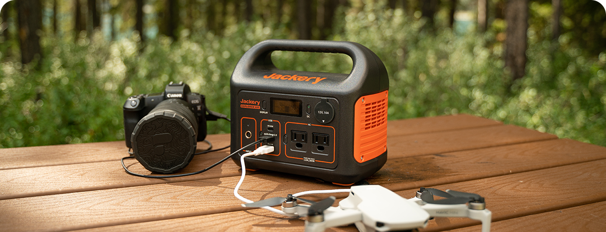 Jackery Solar Generator 300 combines Explorer 300 Portable Power Station and SolarSaga 100W and is suitable for RV, camping, and other outdoor activities. The solar panels absorb the sun's energy to convert it into electricity, which is then stored in a portable power station. It can run most of your personal electrical appliances, including a laptop, drone, mini cooler, and digital cameras.