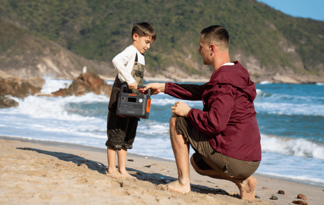 A 8.1lbs power station with a foldable carry handle, designed for effortless outdoor portability.