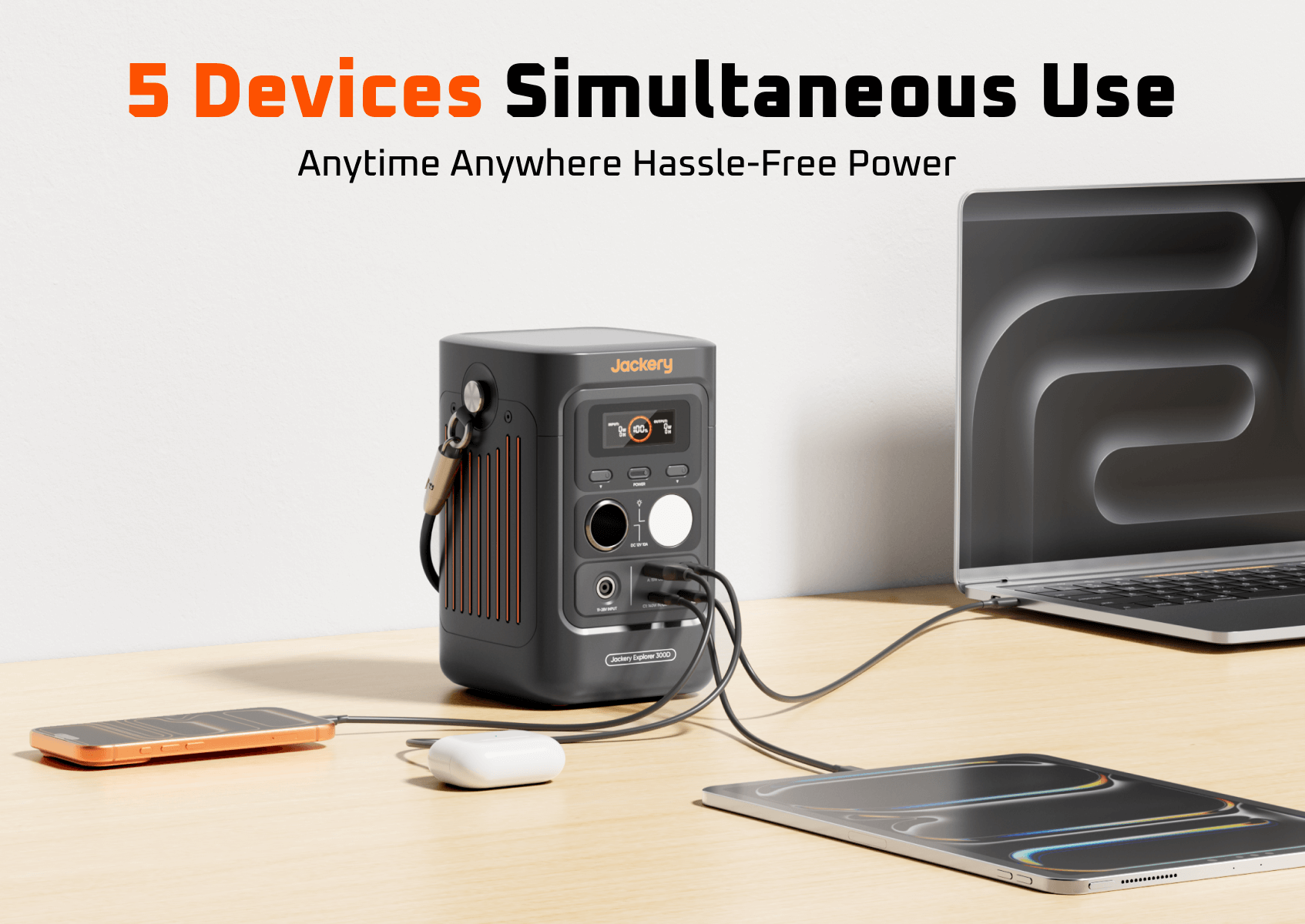 With up to 300W of total output, you can charge five devices simultaneously—perfect for camping setups, mobile workstations, or family emergencies. Keep everyone powered without swapping cables or waiting turns.