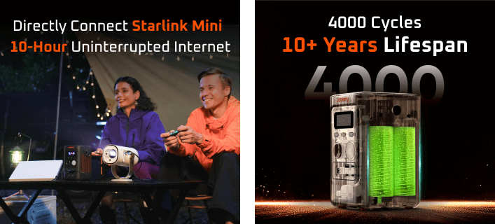 Up to 11 iPhone charges and ~10 hours of Starlink Mini connectivity.