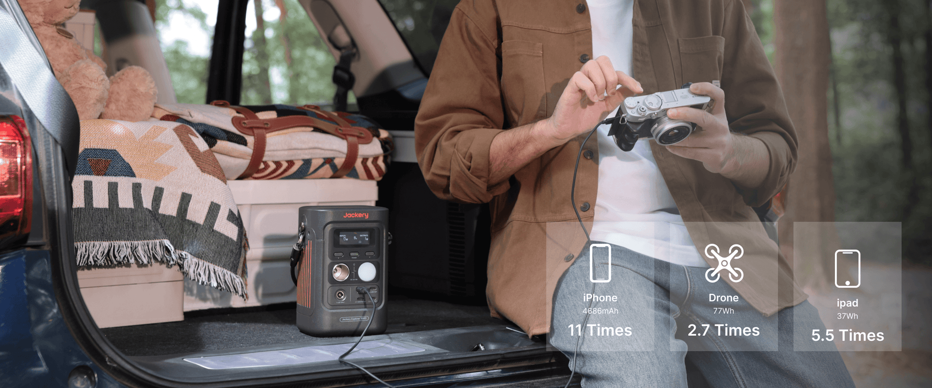 Jackery Portable Power Stations support various charging inputs, including AC charging, solar panel charging, car charging, and USB-C fast charging (on selected models).