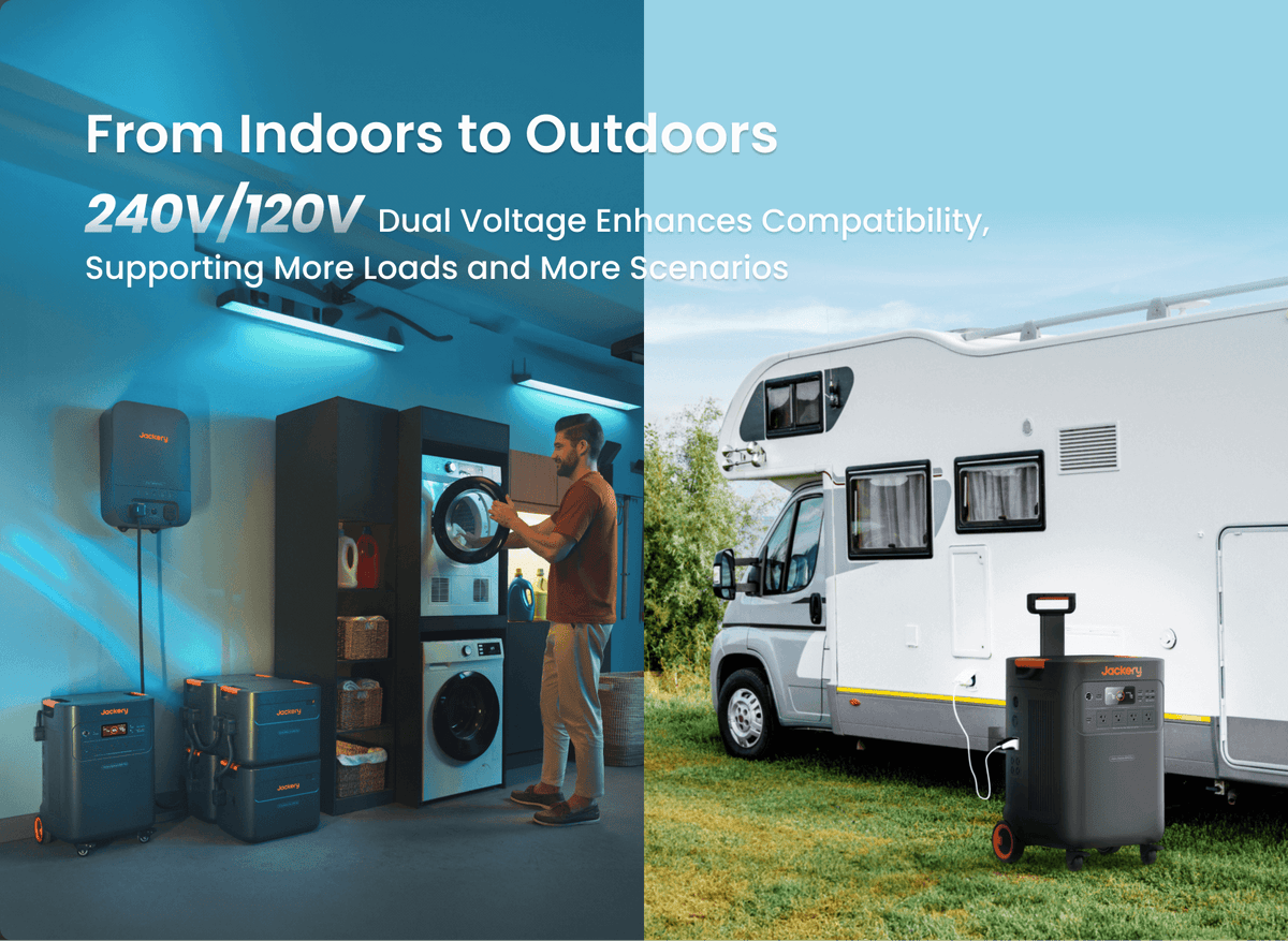 From home backup to RV adventure, 120V/240V dual voltage output covers it all—power your essentials