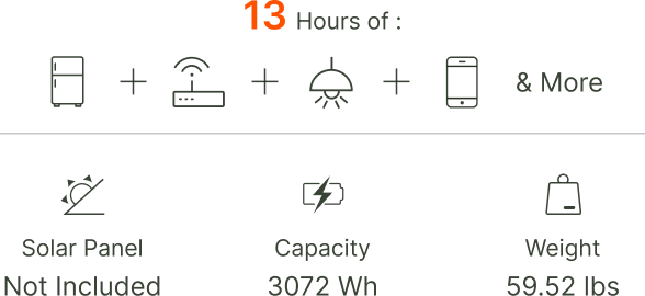 Keeps essentials running for 1-2 days with 3072Wh capacity, powering your fridge, Wi-Fi, fans, and lights through extended outages.