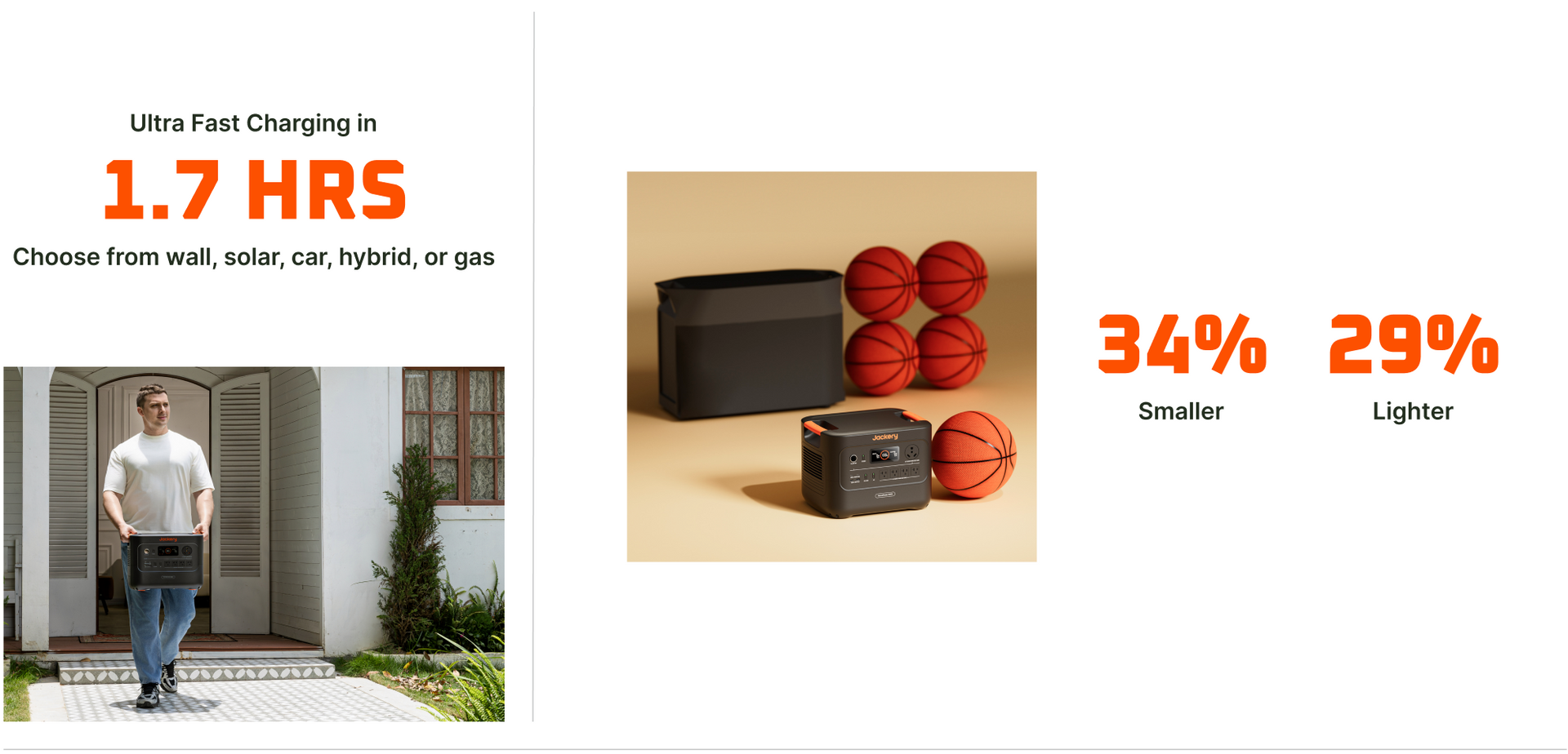 The world's lightest and smallest 3kWh power station, thanks to advanced cell-to-body (CTB) design, easier to move and store without sacrificing power.
