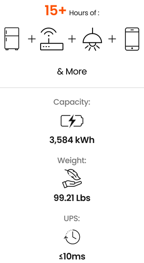 • Power Your Essentials for Weeks: 3600W output and 3584Wh capacity, expandable to 21kWh — keep your fridge running for up to 14 days.