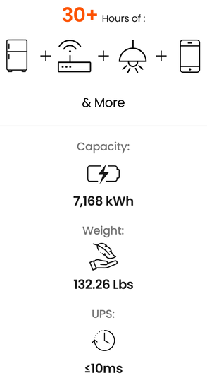 • Supports 120V/240V dual voltage in parallel to power your fridge, water pump, dryer, and more at the same time.