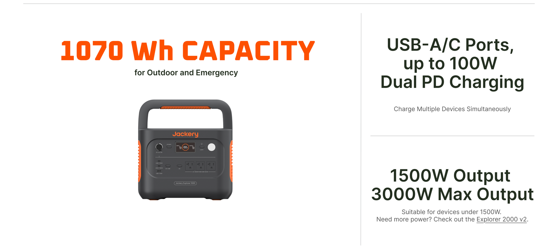 I have 8-1000v2 units. Being smaller and lighter it is easy to use in multiple rooms and carry outside for solar charging. They can run the fridge for 8-10hours and solar charge quickly with 2-200 solar panels. I would Highly recommend Jackery products and am Quite pleased with all of my purchases.