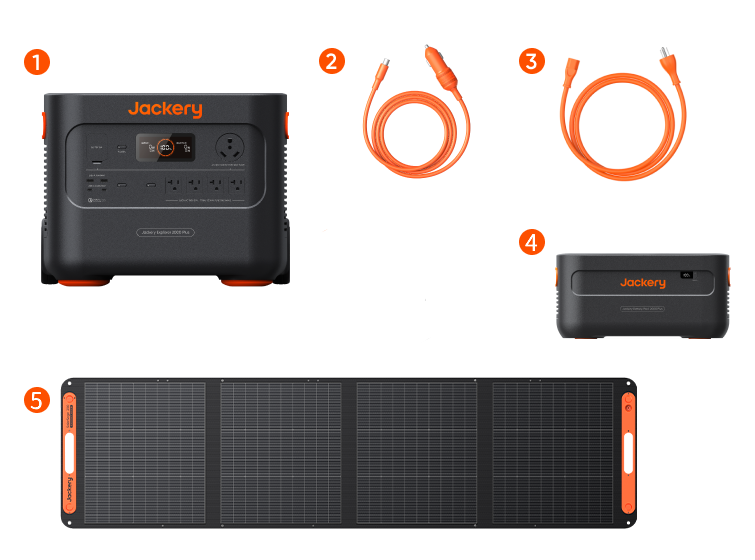 1. Explorer 2000 Plus Kit (4kWh) + SolarSaga 200W x 2 = Explorer 2000 Plus +Battery Pack 2000 Plus + SolarSaga 200W x2