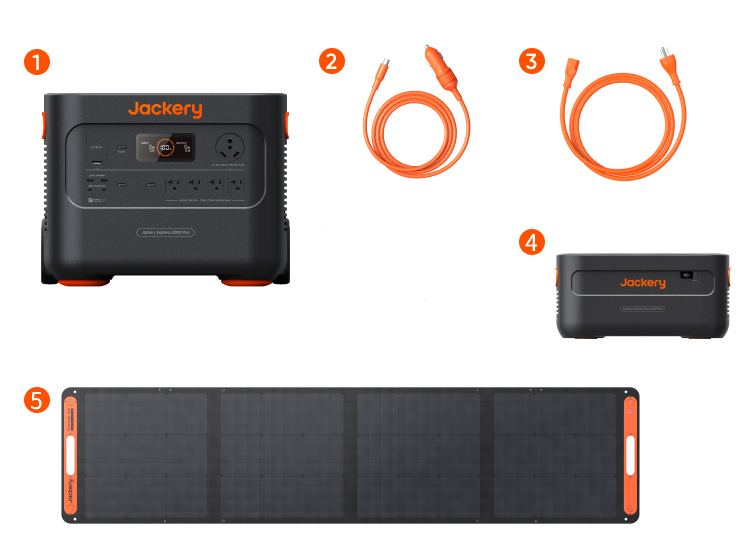 · Explorer 2000 Plus Kit (6kWh) + SolarSaga 200W x 2 = Explorer 2000 Plus +Battery Pack 2000 Plus x 2 + SolarSaga 200W x2