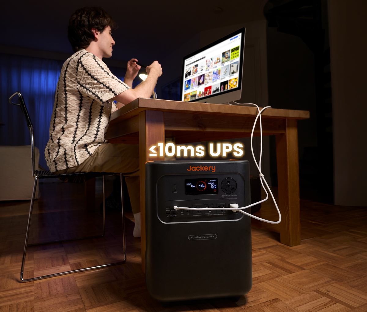 Yes, HomePower 3600 Plus supports UPS mode. When connected to AC input, it powers devices through grid electricity. In case of a sudden outage, it automatically switches to battery mode within 10ms.