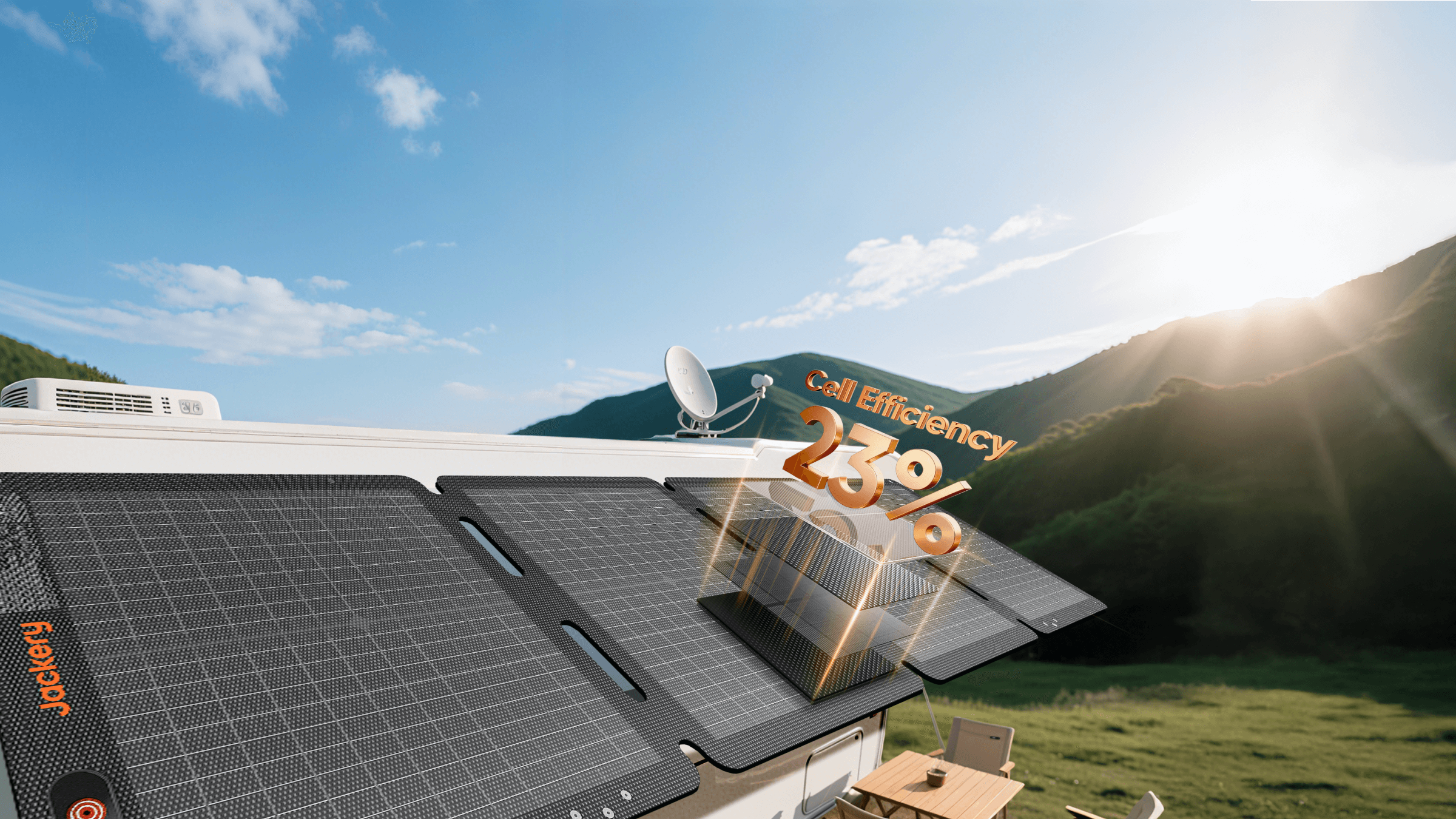The 100W solar panel can work with Jackery portable power stations (rechargeable battery inverters). You can collect sun power and store in power stations for charging, connecting and backup power.
