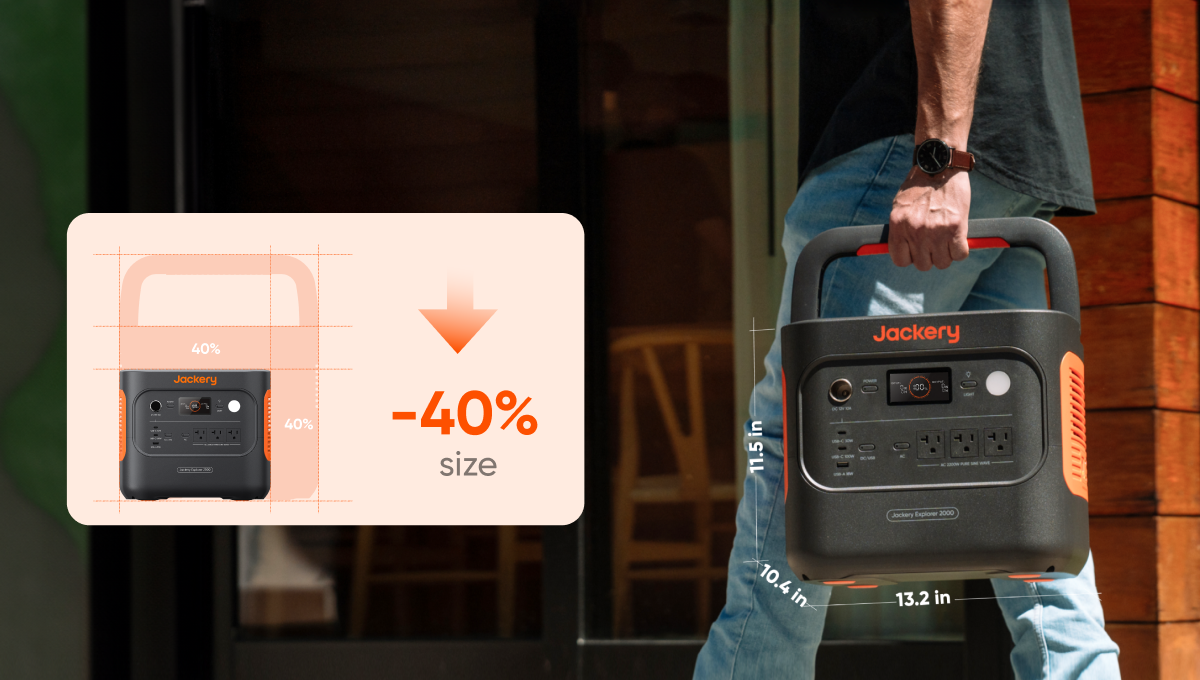 Designed for convenience, the Jackery 2000 v2 features a foldable handle and weighs just 18kg. This compact, lightweight powerhouse is perfect for home backup without taking up space, making it ideal even for apartments.