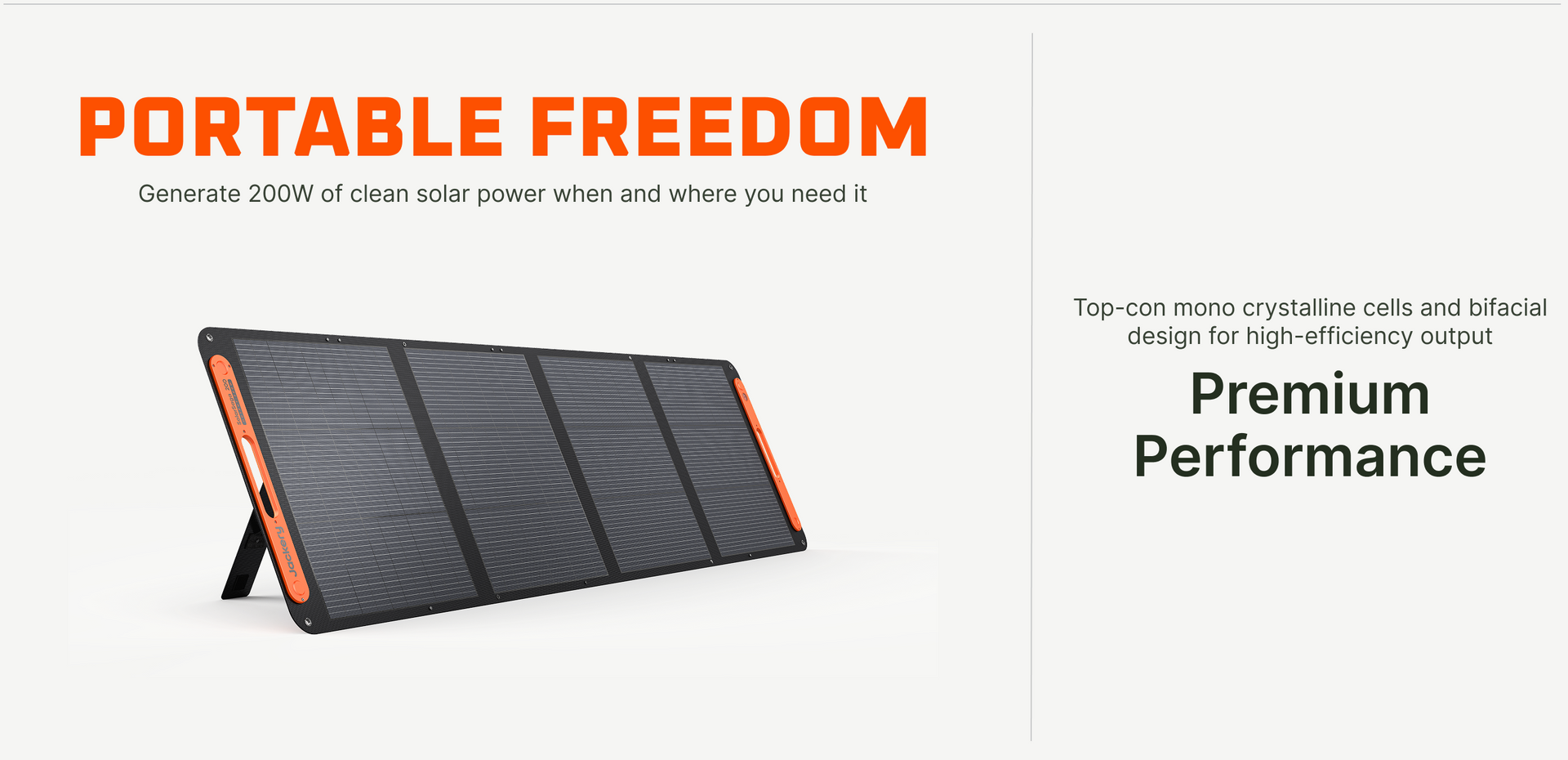 Harness the sun with Jackery's SolarSaga 200W Solar Panel. Recharge compatible Jackery power stations faster and extend your off-grid adventures.