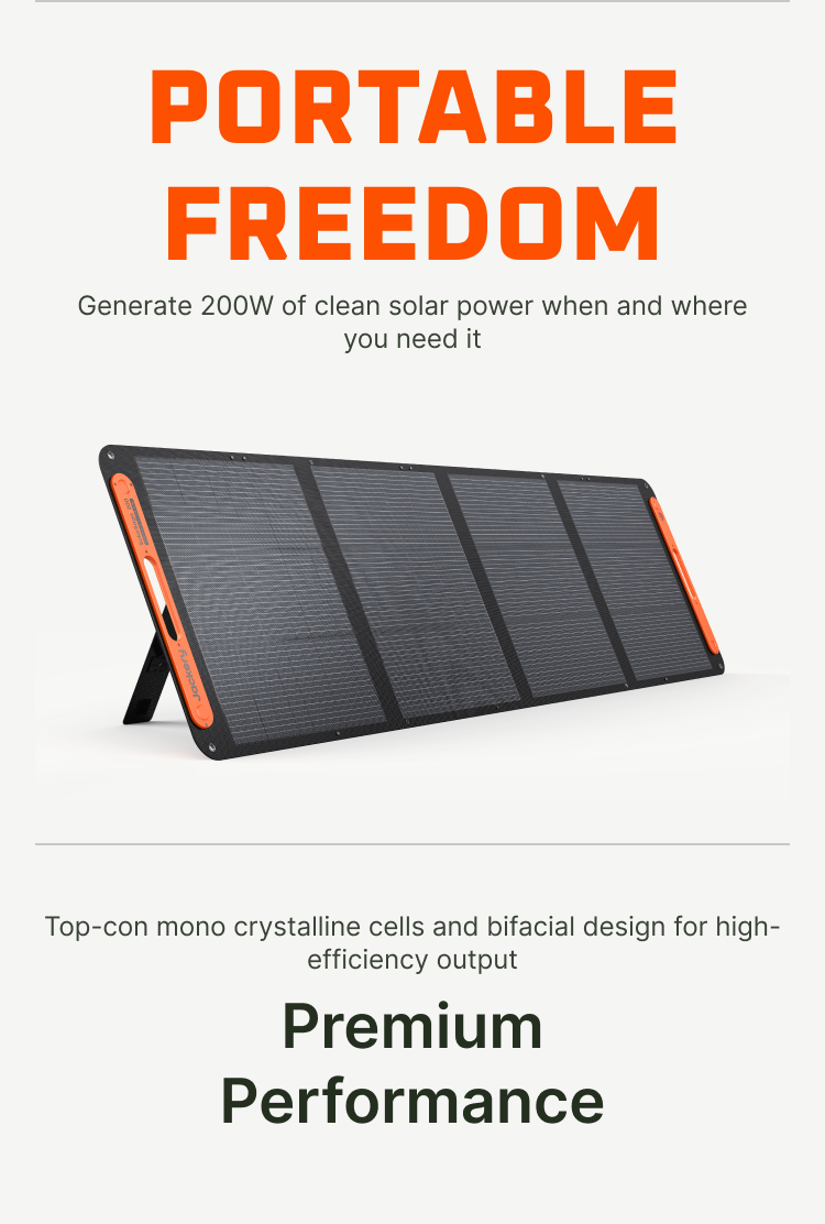 Harness the sun with Jackery's SolarSaga 200W Solar Panel. Recharge compatible Jackery power stations faster and extend your off-grid adventures.